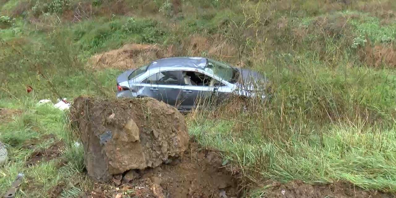 Saat 10.00 sıralarında seyir halinde olan Avni K. isimli sürücü, aracının direksiyon hakimiyetini kaybederek kaldırıma çıktı ve şarampole yuvarlandı.